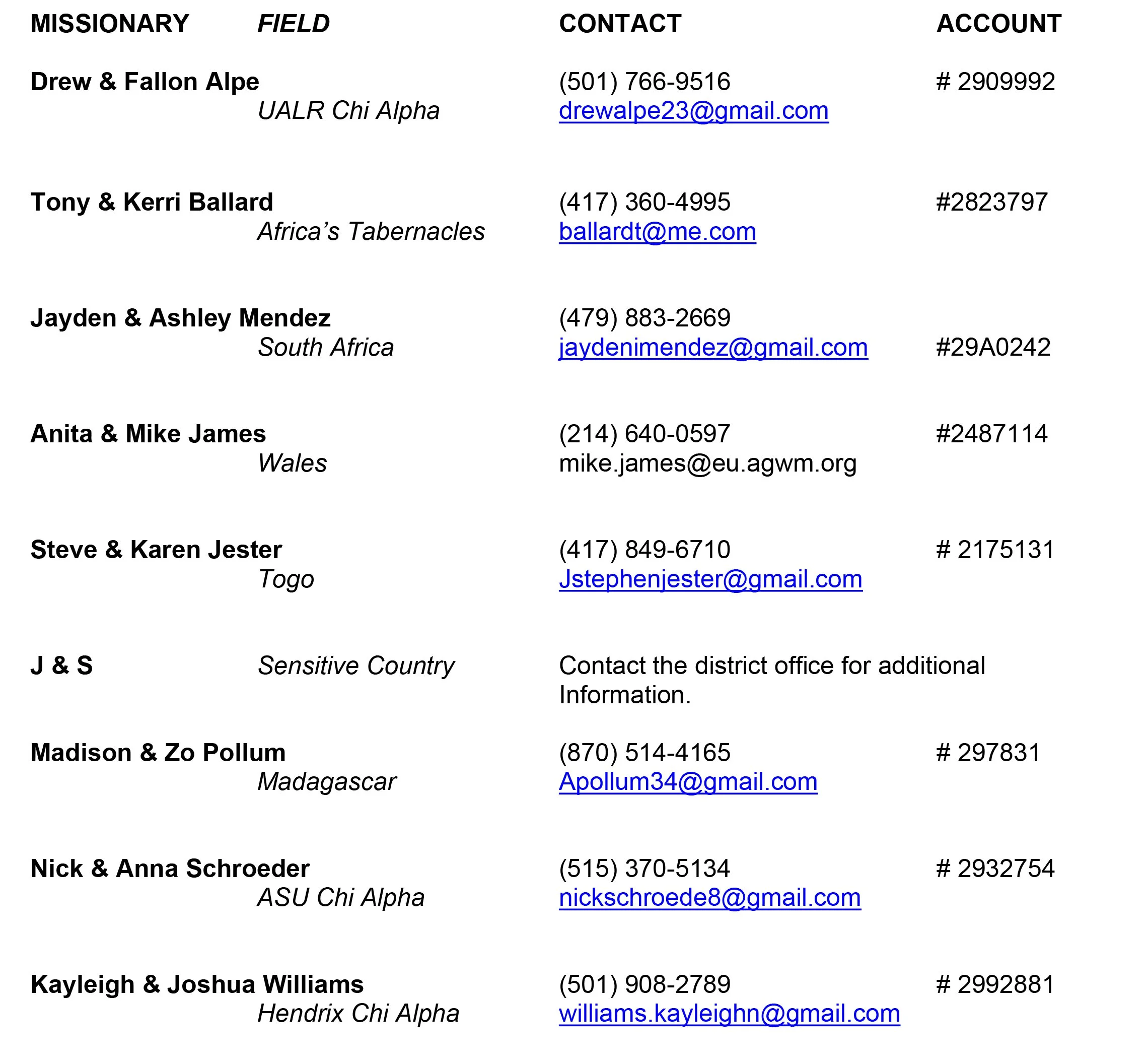 Thank you for your ongoing support of missions and those who serve as missionaries and missionary associates!