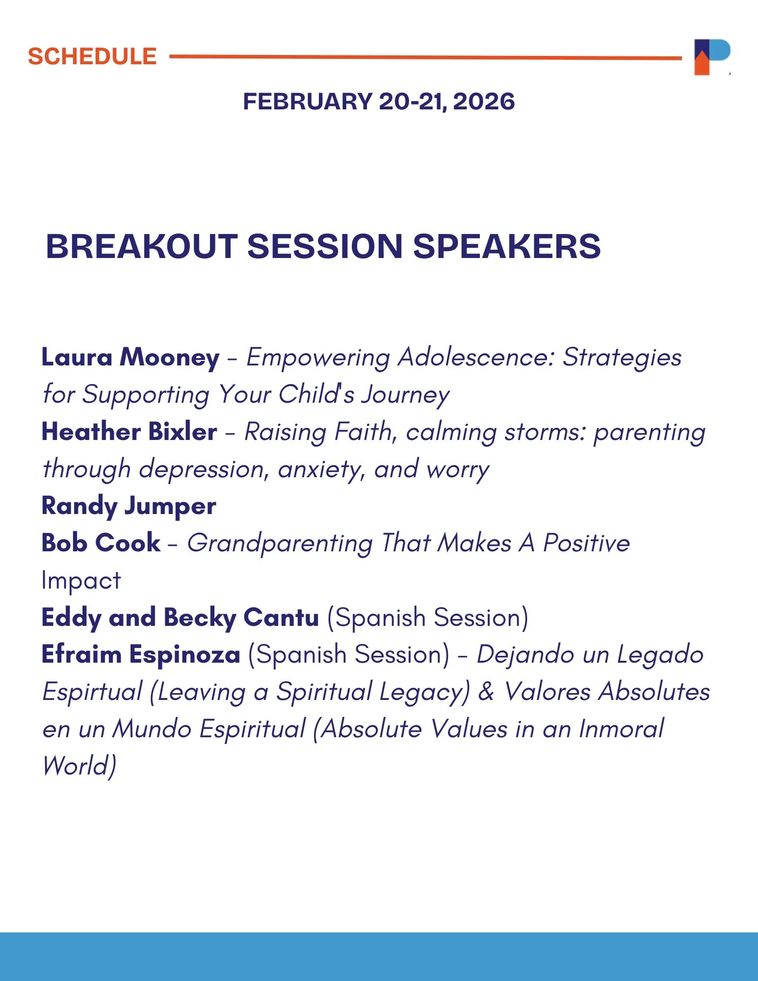 Parenting Conference – equipping moms and dads to raise godly sons and daughters in an ungodly world.